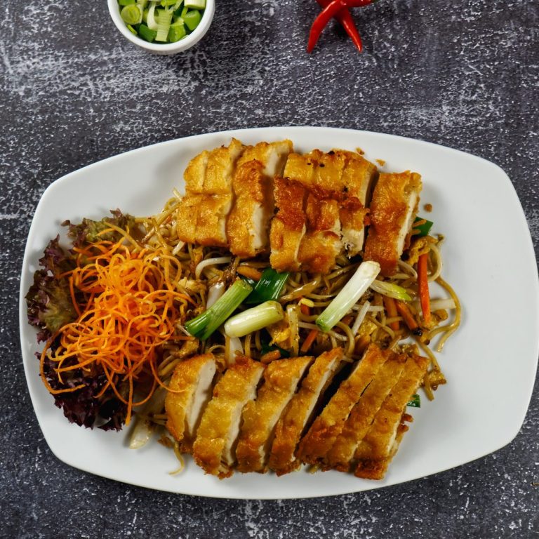 Mi Xao Ga Chien Gion - Gebratene Nudeln mit paniertem Hühnerfleisch, Ei & Gemüse