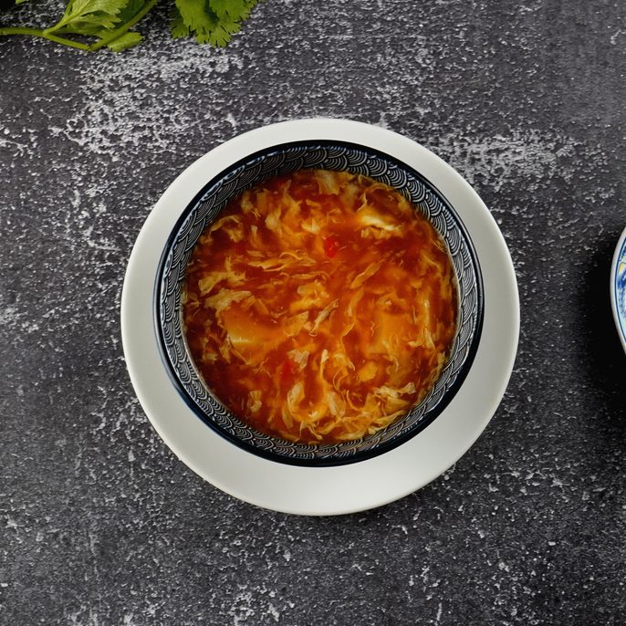 Peking Suppe - Herzhafte Brühe, zusammen mit Fleisch und verschiedenen Gewürzen.